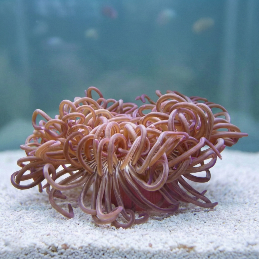 本種の飼育で最も重要な項目です。体を安定させるため、最低でも10cmから12cmの深さの砂層が絶対に必要です。粒の細かいパウダーサンドや細目の砂を使用してください。角のあるサンゴ砂は体を傷つけるため避けるべきです。This is the most critical aspect of keeping this species. A sand bed depth of at least 10 to 12 cm is absolutely necessary for the anemone to stabilize itself. Use fine powder sand or fine-grade sand. Avoid crushed coral as it can injure the body.
