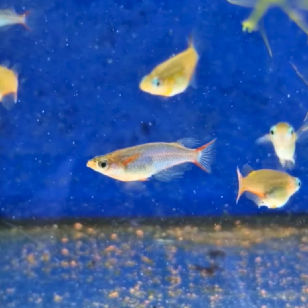 雑食性です。普段は口のサイズに合った小粒の人工飼料(浮上性)を与え、おやつとして冷凍ブラインシュリンプやミジンコなどの生餌を定期的に与えると、健康と美しい発色につながります。They are omnivores. For their daily diet, provide small, floating artificial foods suited to their mouth size. Supplementing with frozen brine shrimp or live foods like daphnia periodically will contribute to their health and vibrant coloration.