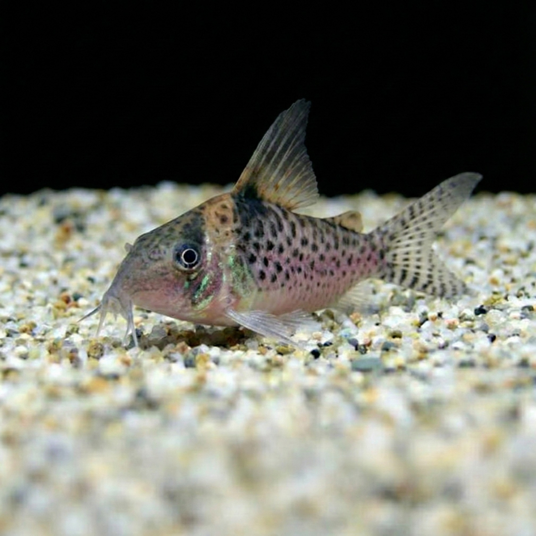 カージナルテトラやグリーンネオンなど、同じ南米産の小型カラシンとは相性抜群です。これらが上層を泳ぐことで、コリドラスの警戒心が解けます。オトシンクルスなどのコケ取り魚とも問題なく混泳できます。Excellent with small South American characins like Cardinal Tetras, which act as dither fish. Otocinclus are also good tank mates.