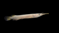 - 頭部と口: 頭部には、上向きに大きく開く、跳ね橋のような構造の口がある。この口は3つの部分に分かれて開き、水面で獲物を捕らえることに特化した明らかな適応である。顎、口蓋、咽頭、そして「骨の舌」として知られる舌骨など、口腔内の多くの骨に歯が備わっている。