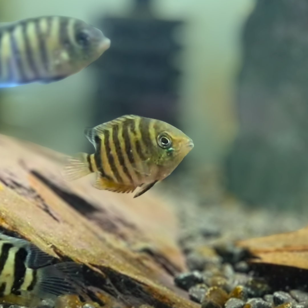 シクリッドの中では比較的温和ですが、成長すると縄張り意識を持ちます。特に繁殖期は攻撃的になることがあります。Relatively peaceful for a cichlid, but they become territorial as they mature. They can be particularly aggressive during breeding periods.