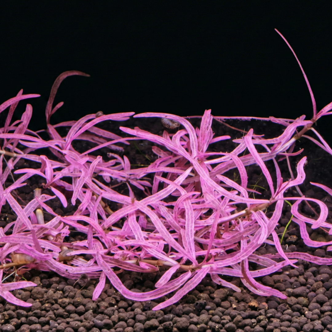 ハイグロフィラsp.チャイは、現代のアクアリウムシーンにおいて最も衝撃的な色彩を持つ水草の一つです。一般的な「ハイグロフィラ・ランセア・アラグアイア」から突如として現れたこの変異株は、鮮烈なネオンピンクから淡いパステルピンクの葉を展開し、水景の中に圧倒的な存在感を放ちます。その美しさはまさに「奇跡」と呼ぶにふさわしいものですが、同時に光合成を担う葉緑素(クロロフィル)が極めて少ないというデリケートな性質も併せ持っています。そのため、育成には強烈な光、高濃度のCO2、そして細やかな栄養管理が不可欠であり、アクアリストの情熱と技術が試される究極のステートメント・プランツと言えるでしょう。Hygrophila sp. ‘Chai’ is one of the most visually stunning aquatic plants in the modern aquascaping scene. This mutation of the common ‘Araguaia’ variety features vibrant neon to pastel pink leaves that create an incredible contrast within an aquarium. While its beauty is truly miraculous, it possesses a delicate nature due to significantly reduced chlorophyll levels. Consequently, it requires intense lighting, high CO2 levels, and precise nutrient management, making it the ultimate statement piece for dedicated aquarists.