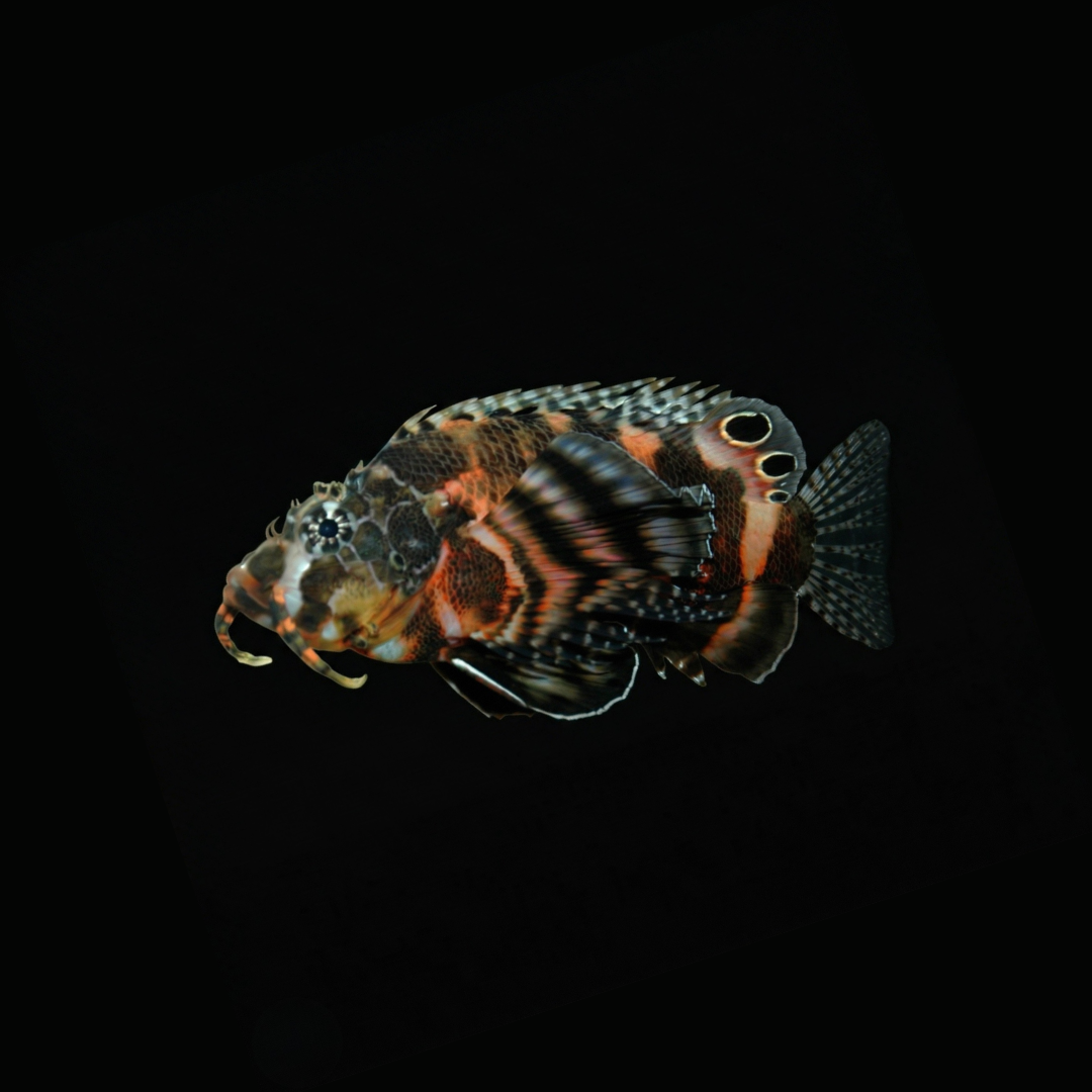 多くのミノカサゴが水中に浮遊して待ち伏せを行うのに対し、ヒレボシミノカサゴは海底に密着した生活を送ります。胸鰭の下部にある鰭条は膜から独立しており、これを足のように使って岩の上を這い回ります。そのカクカクとした独特な動きは、ダイバーやアクアリストから「ラジコンカーのよう」と表現されることもあり、他の魚にはないコミカルかつメカニカルな魅力を持っています。While many lionfish hover, this species stays close to the bottom. Its lower pectoral rays are free from the membrane, allowing it to “walk” or hop along rocks, movements often described as mechanical or like an RC car.
