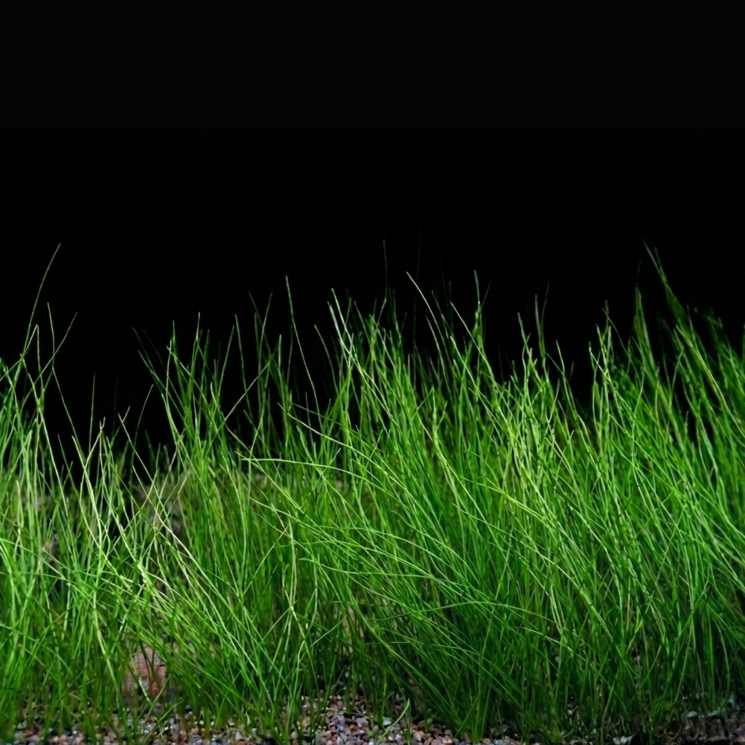 ヘアーグラス(和名:マツバイ)は、その名の通り髪の毛のように細く繊細な葉を持つカヤツリグサ科の水草です。水槽内に広大な草原のような景色を作り出す「石組み(Iwagumi)」スタイルやネイチャーアクアリウムにおいて、最も基本的かつ重要な役割を果たしています。日本国内の田んぼや湿地にも自生しており、私たち日本人にとってはどこか懐かしい原風景の一部でもあります。アクアリウムでは、古くから親しまれている直立して背が高くなるタイプであり、繊細で涼しげな茂みを作ることができます。Hairgrass (Japanese name: Matsubai) is an aquatic plant of the Cyperaceae family with thin, delicate leaves resembling hair. It plays a fundamental and crucial role in “Iwagumi” styles and Nature Aquariums, creating vast grassland-like sceneries within tanks. Native to rice paddies and wetlands across Japan, it evokes a sense of nostalgia as part of the original Japanese landscape. In the aquarium hobby, it has long been appreciated for its upright growth habit, creating delicate and refreshing thickets.