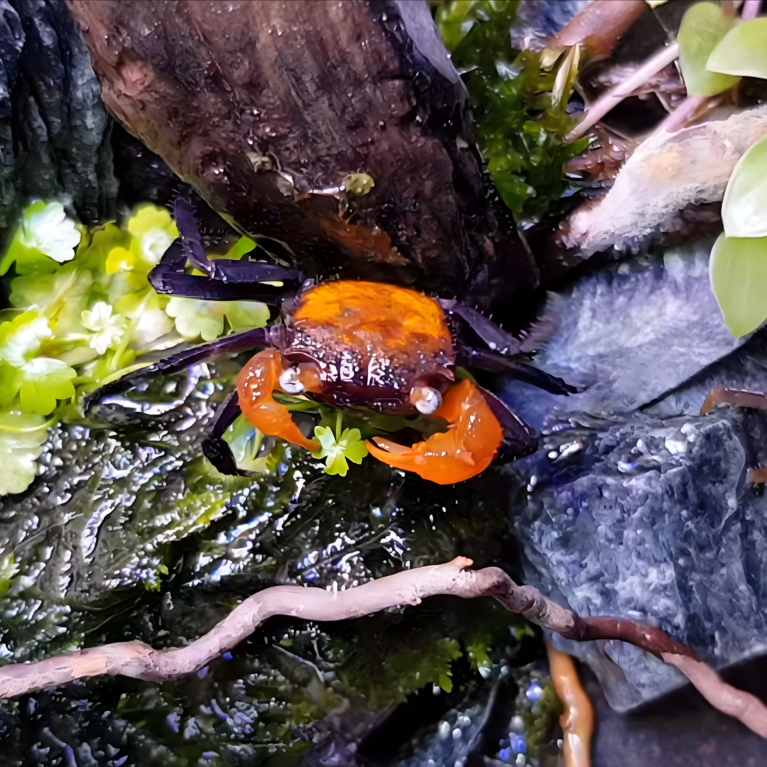 レッドデビルクラブは、その美しさだけでなく、陸と水を行き来する半陸棲の生態そのものが魅力的な生物です。彼らの飼育は、熱帯雨林の林床を模した「パルダリウム」という小さな生態系を創造し、維持する深い喜びを与えてくれます。The Red Devil Crab is an alluring creature, not just for its beauty, but for its fascinating semi-terrestrial lifestyle, moving between land and water. Keeping them offers the profound joy of creating and maintaining a small ecosystem—a “paludarium” that mimics the tropical rainforest floor.