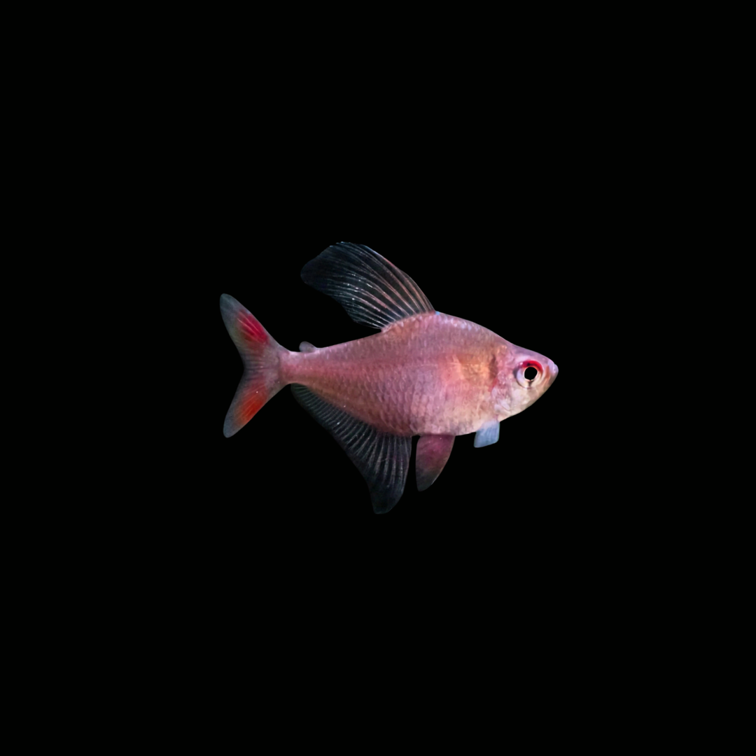 ロベルティテトラは、南米ペルーのアマゾン川上流域を原産とする、カラシン目の中でも特に優雅な姿を持つ小型魚です。最大の魅力は、成熟したオスに見られる大きく伸長した背びれで、その形状から「シックルテトラ(鎌のテトラ)」とも呼ばれます。体色は深みのある赤褐色からワインレッドに染まり、水草の緑に非常に美しく映えます。長年、近縁種との混同により分類学的な位置づけが不安定でしたが、2014年に正式に新種として記載され、現在ではその独立した美しさが広く認められています。Robert’s Tetra is a small fish with a particularly elegant appearance among the Characiformes, native to the upper Amazon River basin in Peru. Its greatest attraction is the significantly elongated dorsal fin seen in mature males, which is why it is also known as the “Sickle Tetra.” Its body color shades into a deep reddish-brown or wine red, making it stand out beautifully against green aquatic plants. For many years, its taxonomic position was unstable due to confusion with closely related species, but it was formally described as a new species in 2014, and its independent beauty is now widely recognized.