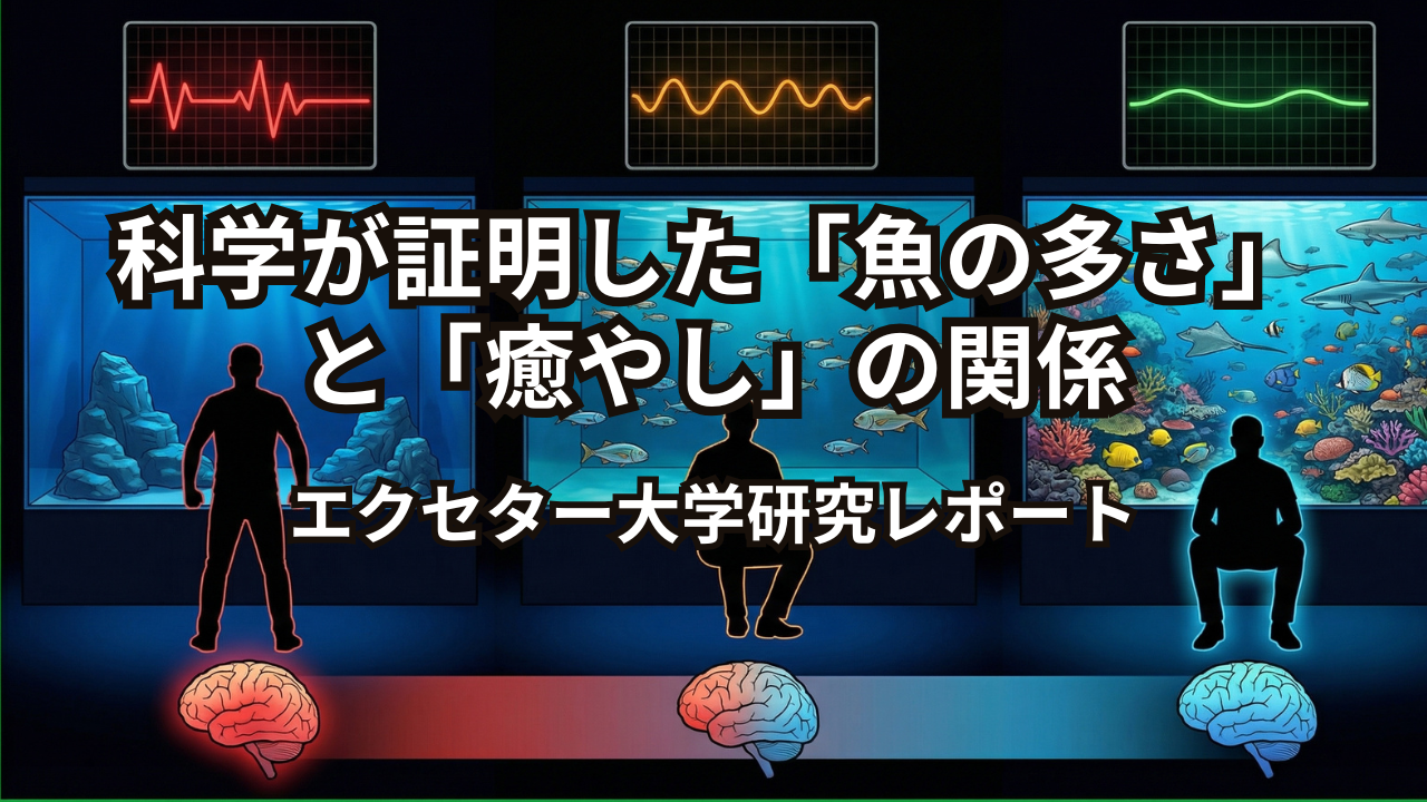エクセター大学の研究は、「水槽の癒やし」が単なる個人の感想やプラセボ効果ではなく、「魚類の個体数および生物多様性に比例して増大する、生理学的かつ定量的な鎮静反応」であることを統計的に証明した画期的なマイルストーンです。