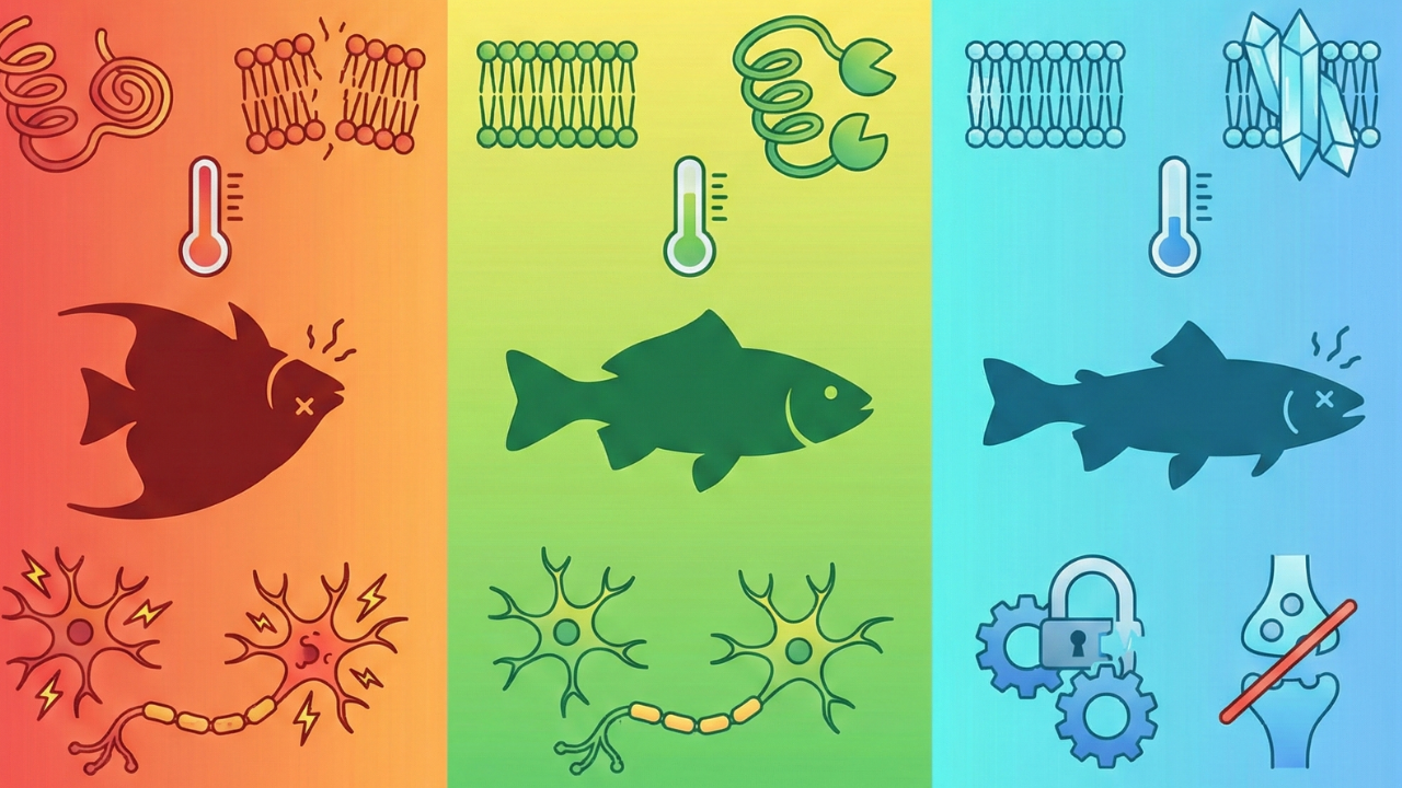 「熱帯魚が冷水で死に、冷水魚が温水で死ぬ」。アクアリウムでは常識とされるこの現象の裏側では、細胞レベルで一体何が起きているのでしょうか?最新の180件以上の研究資料に基づき、温度変化が魚類に死をもたらす生理学的・生化学的メカニズムを徹底解説します。