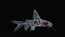 プレウロプスは、主にコンゴ川水系に生息するシノドンティス属のナマズであり、その最大の特徴は、学名の由来ともなっている非常に大きな瞳と、美しく伸長する背鰭が作り出す独特のシルエットにあります。他のシノドンティスと比較して頭部が平たく、体側の模様も繊細であることから、アフリカ産ナマズの愛好家の間では古くから根強い人気を誇る種類です。飼育に際しては、清浄な水を好む性質があるため、強力な濾過システムと定期的な換水が健康維持の鍵となりますが、性格は比較的温和であるため、サイズが同程度の魚であれば混泳も十分に楽しむことができます。水槽内に複雑な隠れ家を用意し、落ち着いた環境を提供することで、大きな瞳で周囲を伺いながら優雅に泳ぐプレウロプス本来の魅力的な姿を長期にわたって観察することが可能となります。